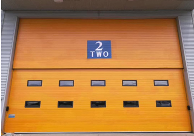 多段重疊垂直提升門常用于門洞較高,但內(nèi)部安裝空間不足的工業(yè)廠房中,因為可以分成多段門板上升,然后重疊一起,所以不需要升到內(nèi)部去,可以解決內(nèi)部安裝空間不足的問題。